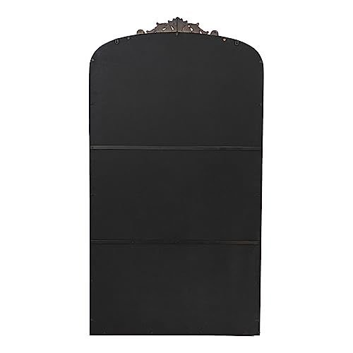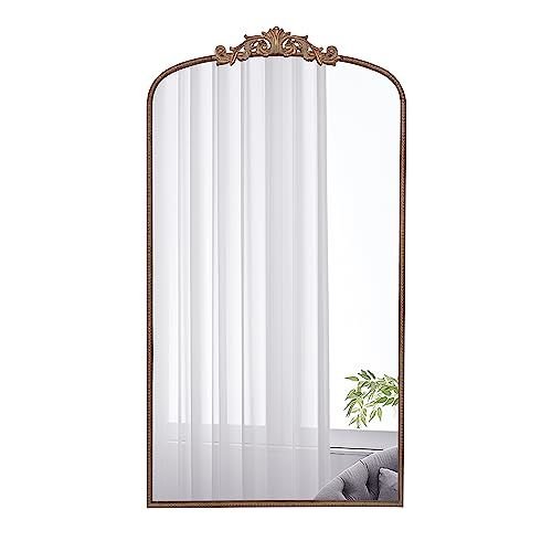 The DesignBoasting a grand arched silhouette, a smooth golden frame, and an intricately crafted regal adornment at the head, this full-length mirror blends classic baroque style with versatile function. Measuring a large 66H x 36W x 2D, it will capture your whole reflection with ease while also elevating the decor in your living room or bedroom.