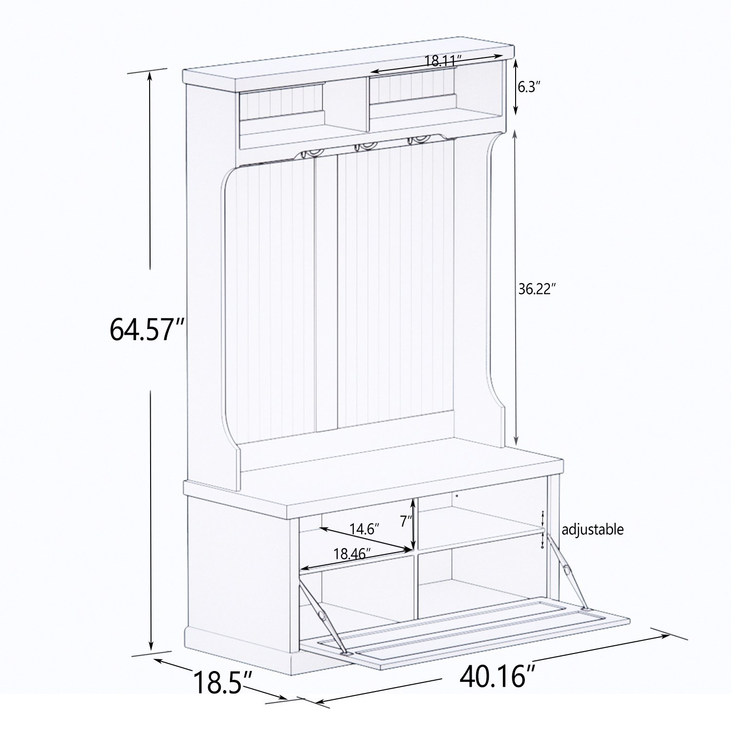 Classical Simple in Design: Hall tree with a storage cabinet, finished with white color, go with all kinds of home styles, sit on the bench for easy wear shoes.